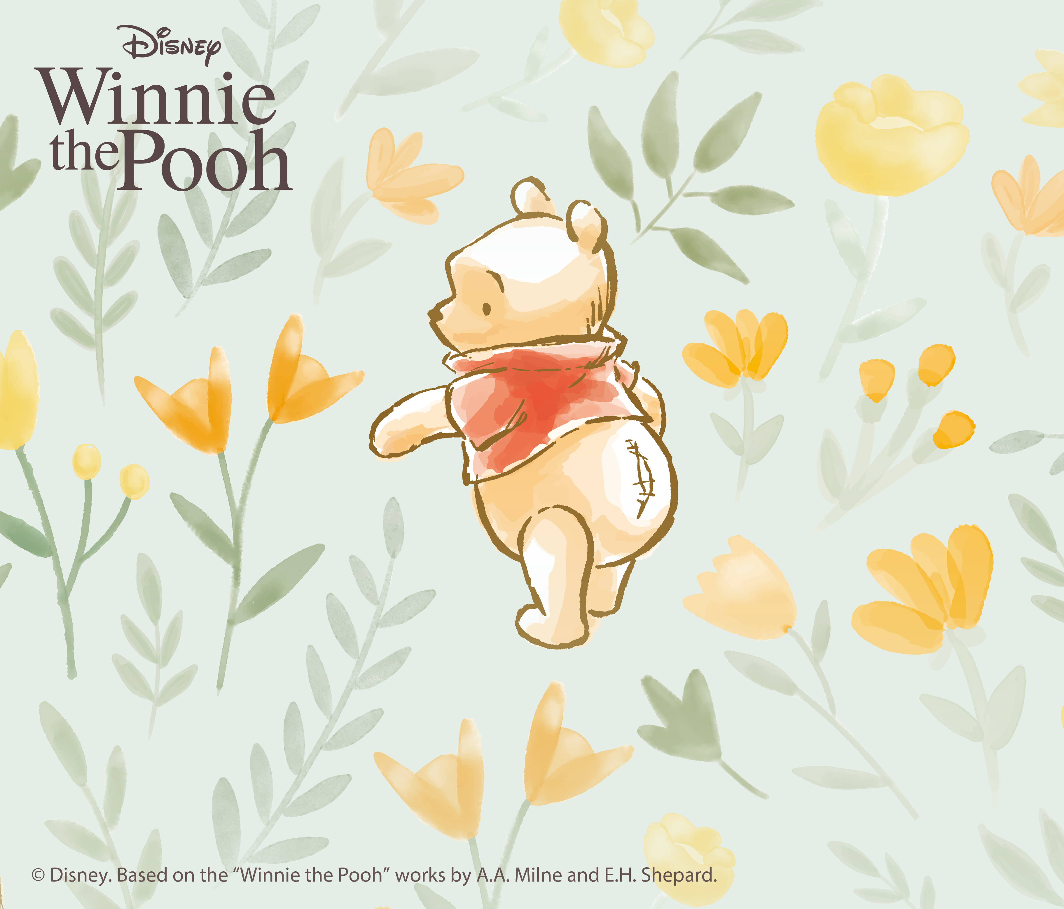 In this "Sweet Dream in the Flowers" collection, Winnie the Pooh transforms into a little sprite among the blossoms: sometimes rolling freely among the yellow flowers, sometimes lying on his side listening to the whispers of the leaves, his red clothes slightly upturned, capturing a playful ray of sunlight. These patterns are understated, merely sketched lightly, scattered into impromptu illustrations, allowing the entire space to breathe in the freshness and tranquility of the forest—no noise, only that comforting sea of flowers, inviting you to steal a moment of peace and enjoy a tranquil time.